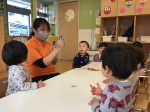 まずは子ども達の大好きな絵本シリーズ「だるまさんの」の読み聞かせからスタートしましたよ📚