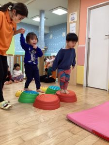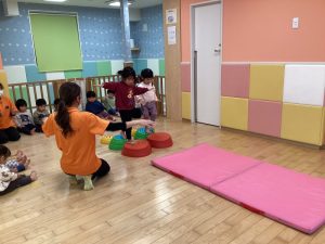 マットや平均台が登場し、何が始まるのかとワクワクする子ども達👦🏻👧🏻✨