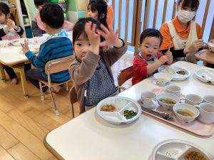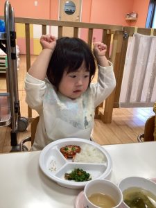 この日は「鬼のハンバーグ🍴」が出てきて子ども達も大喜び🙌