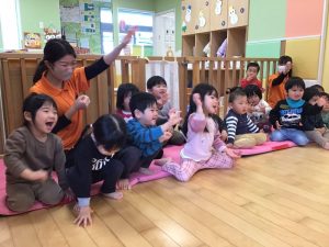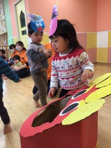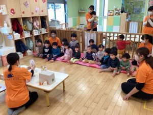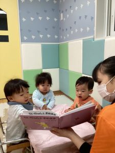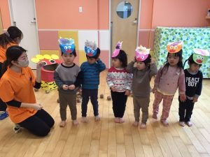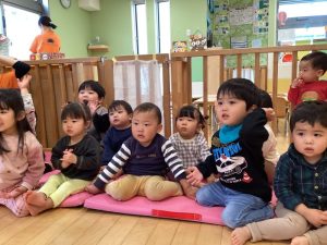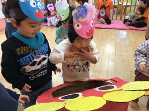 節分にぴったりの絵本を見て、ますます節分会や製作への期待が募っていった子ども達でしたよ❣️