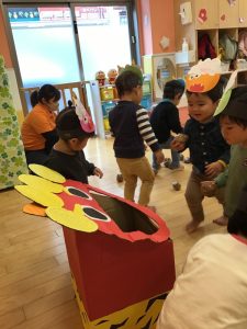 もう少しで幼稚園に入るちいちゃんとだいちゃん幼稚園に遊びに行って見ると、、この日は節分のようでした鬼のお面がでてくるページをなると、、