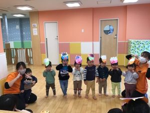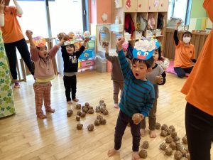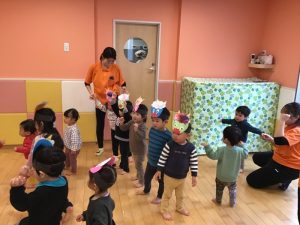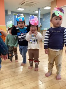 1月後半から少しずつ「♪鬼のパンツ」を踊っていたので、曲が流れると「鬼のパンツだ〜!」と嬉しそうな声があがっていました😄✨