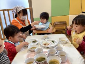 鬼退治をした後はお腹ぺこぺこ〜🤤な子ども達💦