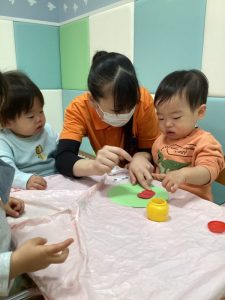 まずは先々週のブログでお伝えきれなかった🍎りんご組さん🍎と🍑もも組さん🍑の鬼のお面製作からです👺