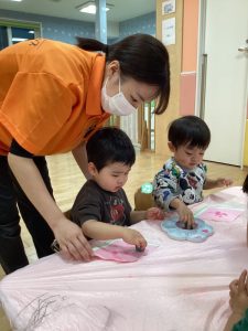 次は、もも組さんといちご組さんの製作活動の様子をお伝えいたします💕