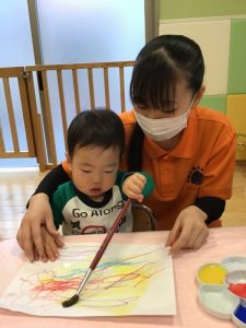 特に絵の具が楽しかったようで、キャッキャと声に出しながら喜んでいました💓