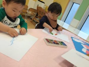 💁🏻♀️「まず初めにクレヨンでお絵描きするよ〜🖍」