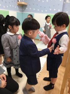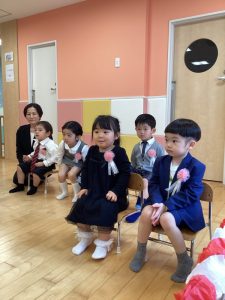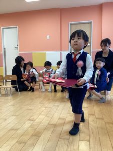 素敵なお洋服に身を包み、コサージュをつけてもらうと嬉しそうな笑顔の子ども達😊✨