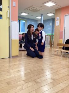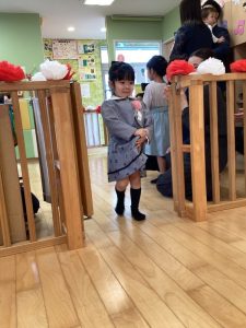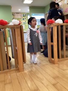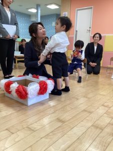 緊張の中でも、一人ひとりお名前を呼ばれると元気に「はい❗️🙋🏻♀️」とお返事をして保育室に入っていきましたよ😊💕