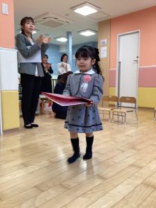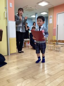 証書を受け取った後は担任の先生と「保育園で楽しかったこと」の発表を行いました❣️