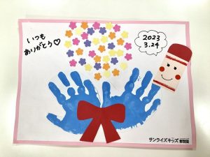 卒園するまで毎日送り迎えをして、毎日保育園の準備をしてくれたお父さんお母さんへの感謝の気持ちを込めて子ども達からのプレゼントです☺️🌸