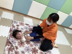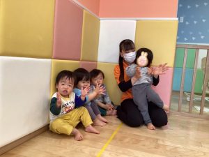 もも組さんは音楽を聞きながら先生とスキンシップをとりながら楽しんでいます🌈