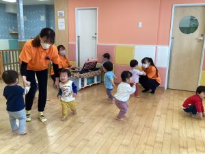 🎶「お馬の親子は仲良しこよし」🎶のお歌に合わせてお部屋をお散歩しました🌼