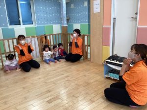 みんなが大好きなハンドサインはお友達や先生の真似をしながら行いますよ🎶