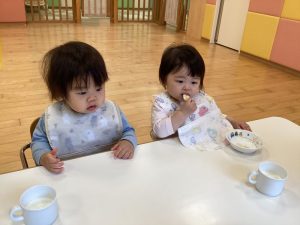 初めてのおやつとお給食にドキドキ…💕💕