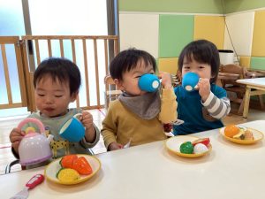 さっきまで涙を見せていたお友達もおやつを食べて元気を取り戻してくれましたよ😉