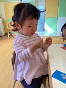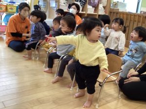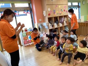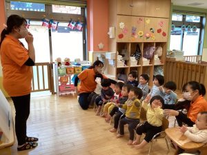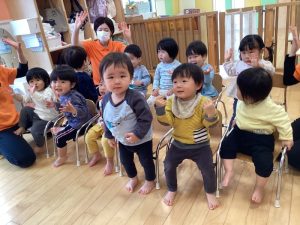 先生の真似っこをしながら手遊びを楽しんでいました😊