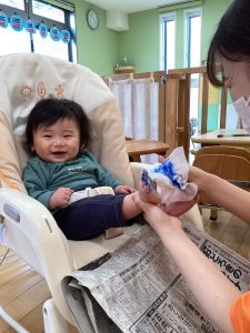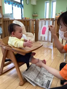 💁🏻♀️「今日は足型ぺったんしてこいのぼりを作るよ👣」