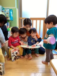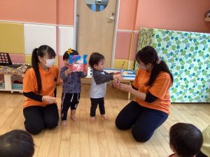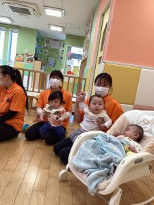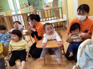 お歌に合わせて身体を揺らしたり手を叩いたりと、もも組さんのお友達も先生のお膝の上で楽しそうな様子でした☺️💕