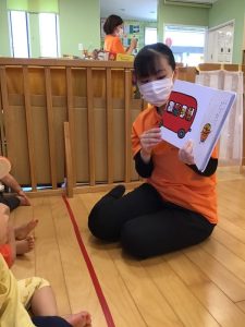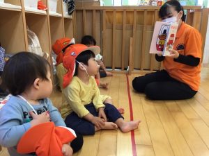 お散歩前のいちご組さんで読み聞かせを行いました🍓🎵