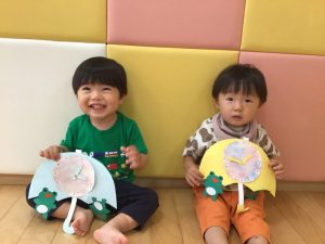 いちご組は傘☂️と雨が大好きなカエル🐸の時計を作りました♪