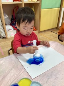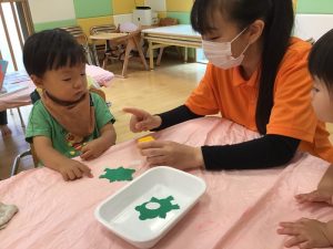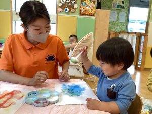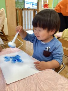 スタンピングする度に画用紙に色づいていく様子を楽しんでいましたよ🧡