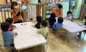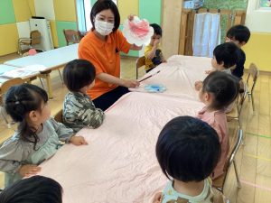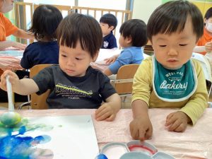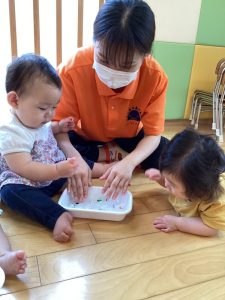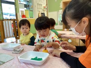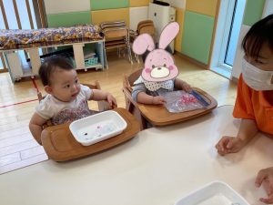 続いてはもも組さんの感触遊びのご様子をお伝えします🍑