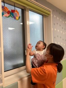 「これなんだろう❓」「ヒラヒラしてるねー😮」と不思議そうに見つめていましたよ🌟