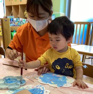 糊付けの製作は先日の保護者懇談会の製作で保護者の方と一緒にしたこともあり、思い出しながら取り組んでくれる子が多くいました😉