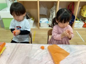 初めて花紙を触ったもも組さん😆