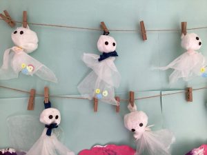 👩🏻「可愛いてるてる坊主さん完成したね😆✨✨