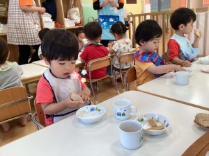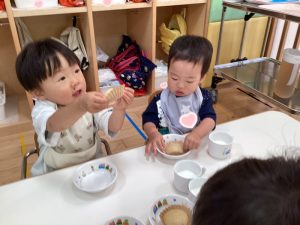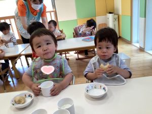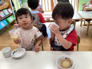 今週、おやつにみんなの💗大好きなきなこ蒸しパン🧁が出ました😆✨✨