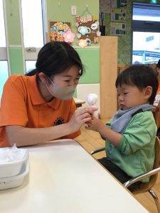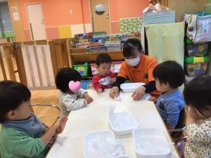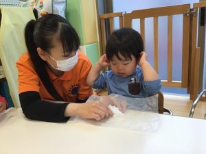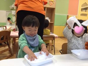 袋に入れたら指で伸ばしてね☝️❤️と先生のお話が終わると、