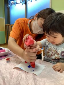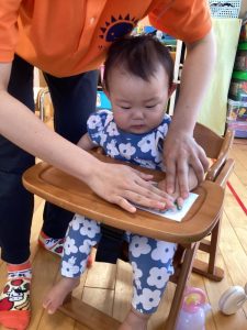 👩🏻「先生と一緒にしようね🎶せーの‼️ぺったん🎶」