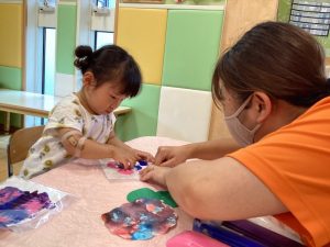 今回行ったのは、「フィンガーペイント」という筆を使わずに絵の具が出来る技法に挑戦しました🎨💕