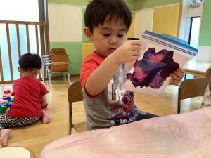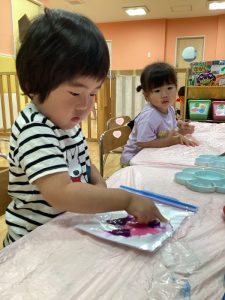 👦🏻「すごーい‼️袋の中で絵の具が広がったよ〜‼️😳