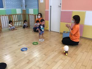 この日はクイズで出してもらった色を英語で答えて、アンパンマンに渡していくゲームを行いました🌈