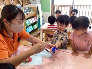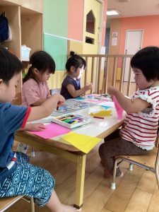 みんな1の指ポーズで上手に糊を使ってますね☝️😃