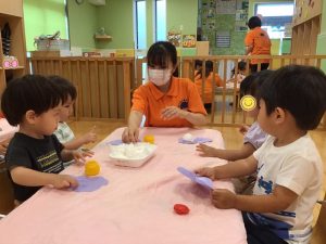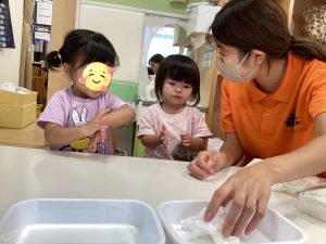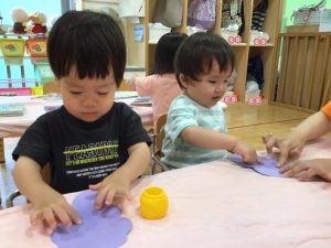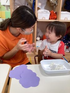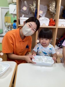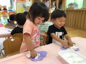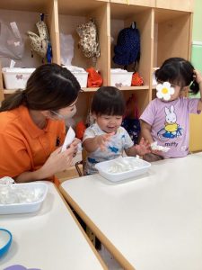 いちご組さんは粘土遊びが大好きなので、くしゃっと丸めるのも得意です✨