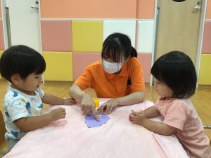 折り紙を好きな形に折ったり、絵を描いたり🎨遊びが色々と広がっていますね😁