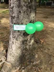 木についている風船とカードに書いてある「あいことば」とお菓子くれる先生のお名前を見て👀お目当てのお菓子を貰いに行きますよ🍭✨