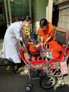 みんなでお菓子ボックスを持って近所の市原薬局様、あづみ野様、クラシオン整体サロン都賀西口店様、FOCUS様を周りお菓子を貰いにいきました🥰✨