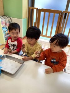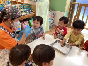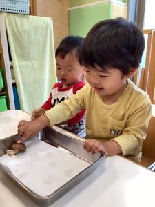 感触を楽しみながら上手に丸めたりちぎったりしていました✨