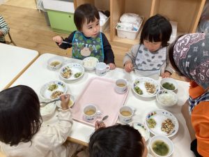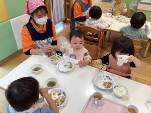 もも組さんのお友達も大きなお口で「パクッ💗」