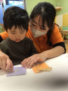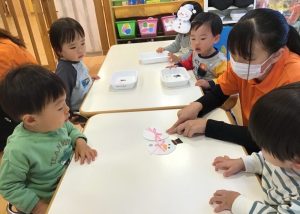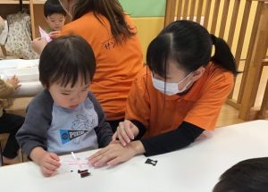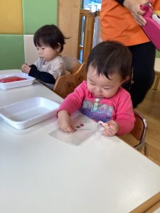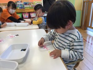 お手本を見ながら同じ場所にシールを貼ることが出来ていましたよ😌🧡