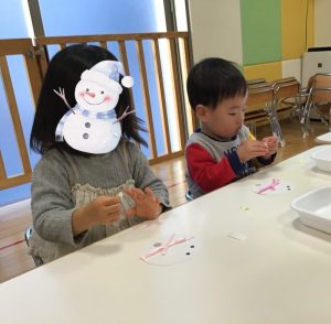 👩🏫「クリスマスツリーに雪だるまさんを作って飾ります⛄️」