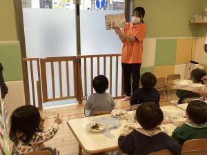 今日は、給食前の時間に絵本の読み聞かせをしましたのでそちらの様子をご紹介します💁🏻♀️