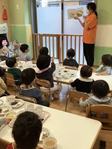 戸外から戻りお腹がぺこぺこの子ども達でしたが、とっても楽しそうに聞いてくれました☺️