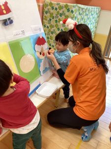 1番始めに、グループに分かれてサンタさんの福笑いをしました🎅🏽💗