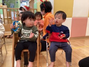 お次はみんなで「ジングルベル🎵」の合奏をしましたよ😊